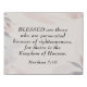 Christian inspirational quote scripture faux canvas art depicts a simple modern abstract mauve background. It features a portion of the Beatitudes, Jesus famous teaching from the Sermon on the Mount, Bible Verse Matthew 5:10, "BLESSED are those who are persecuted because of righteousness, for theirs is the Kingdom of Heaven."