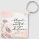 Inspirational quote scripture keychain depicts simple hand drawn flowers on a blush pink abstract background. It features a portion of the Beatitudes, Jesus' beloved teaching from the Sermon on the Mount, Bible Verse Matthew 5:7, "Blessed are the merciful, for they will be shown mercy."