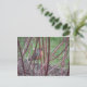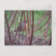 A robin hides behind branches on this postcard, featuring bible verse Matthew 6:19-20.