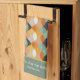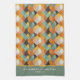 Brighten your kitchen with an uplifting retro vibe! This towel design features a green, brown, gold and orange retro oval pattern and the bible verse Matthew 6:11 Give us this day our daily bread. The copy may be customized to make this uniquely yours by using the personalization tool.
