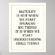 MATURITY IS NOT WHEN WE START SPEAKING BIG THING POSTER