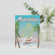 Illustrated map of Mauritius in a beautiful vintage or retro style, featuring a sea plane landing on a beautiful beach.