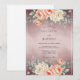 This design features a soft watercolor wash in shades of mauve and dusty rose, creating a dreamlike atmosphere. Delicate floral arrangements of cream and peach roses anchor the top and bottom of the composition. Sage green leaves and foliage add a touch of nature to the romantic aesthetic. Perfect for a spring or summer event, this design exudes elegance and timeless charm.