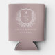 Mauve Botanical Crest Modern Monogram Wedding Can Cooler