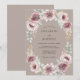 Delicate mauve and blush blooms artfully arranged in a lush botanical flourish. Soft green foliage complements the romantic, painterly aesthetic, creating an atmosphere of refined elegance. This design evokes a gentle, ethereal mood, perfect for a sophisticated affair.