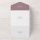 All in one wedding invitation featuring elegant signature script name and monogram initials on a mauve background. The invitation includes a perforated RSVP card with your wedding website QR code and details. Designed by Thisisnotme©