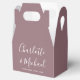 Elegant wedding favor box featuring chic signature script names and special date on a mauve background. You can personalize with your own thank you message on the reverse. A perfect way to say thank you to your guests! Designed by Thisisnotme©