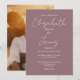 Having your Mauve Minimalist Script Photo Wedding Invitation match the theme of your party is a great detail that your guests will appreciate. The thoughtfulness of a consistent party theme is often appreciated and can show your guests that you can host a cohesive event.