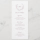 Elegant wedding menu featuring a clean and timeless design with your monogram inside of a wreath crest. Use the template to add each guest name and skip the place cards.