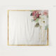 This elegant wall tapestry is so beautiful and romantic at the same time. Perfect wedding decoration piece, to take photos of your guests, red carpet style or as a photo wall backdrop in a wedding photo booth. The design features a thin and minimalist uneven golden edge with golden typography for customizable "introducing, Mr and Mrs Last Name" and wedding date. Decorated with a beautiful mauve pink white floral bouquet. Customizable off White Background