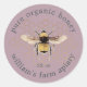 Bring a touch of rustic charm to your homemade honey jars with this round honeybee label. Featuring a hand-drawn bee illustration, delicate gold honeycomb pattern, and a soft mauve background, this design is perfect for apiaries, beekeepers, or anyone packaging farm-fresh organic honey. Personalize with your farm or business name for a professional, artisanal finish that elevates your honey packaging. Ideal for farmer’s markets, gifts, and small business branding.