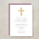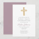 Mauve Script Religious Cross Boy First Communion Invitation