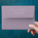 Mauve colored mailing envelope for your wedding invitations and features your name and address printed on back flap in a modern script style. Personalize your envelope by editing and replacing name and address with your own. Edit further to change font style or color. Select your envelope size that fits your invitation.