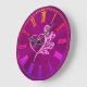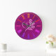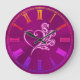 Mauve Stylized Heart and Roses, embossed-effect Large Clock