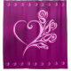 A really pretty shower curtain featuring an embossed-look, filigree heart and roses on a contrasting, aubergine background.