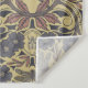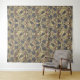 This tapestry features crows, dragonflies, and beetles surrounded by flowers and leaves in shades of mauve and gray on a tan background.