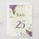 Beautiful romantic table number card featuring mauve and white flowers and some pretty green leaves .
