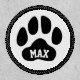 Show your love for your furry friend with this stylish and personalized paw print patch! Featuring a minimalist design with an embroidered edge and a black paw print illustration, this patch is both sleek and charming. The design also includes a custom name printed within the paw, making it the perfect way to add a personal touch to your jacket, backpack, or hat. The sample name is Max, but it can easily be changed to any short pet name of your choice. Made with high-quality materials, this patch is both durable and easy to apply, with iron-on backing for quick and easy application. Whether you're a pet lover or just looking for a stylish accessory to add to your collection, this personalized black paw print patch is the perfect choice. Order now and show off your love for your furry friend!