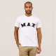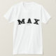 Max! Is your name Max? Or do you have a husband, boyfriend, male family member or male friend named Max? If so, this "Banner" shirt is exactly the gift that you're looking for! The design features "Max" in arched black lettering across the chest in the classic College font.