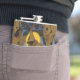 Well made flask, a little better than I had expected. Flask came in clear plastic box which gave it a nice presentation when I took it out of the zazzle packaging. Image is not printed on flask but on sticker. Don't know how this will hold up I haven't used it yet. This would make a Great gift! I plan to purchase more for friends! Cheers. I thought a little brighter than computer. Very crisp, writing wasn't
