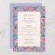 A bold, elegant and whimsical botanical design with embroidered flowers in purple, violet, pink and beige tones.