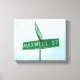 A fun and unique wall art piece for any boy named Maxwell. This canvas print features a photograph of a classic green street sign reading "Maxwell St" set against a pale blue sky, with a cross street sign visible above. A creative alternative to traditional name art, perfect for a bedroom, playroom, or nursery. Makes a thoughtful personalized gift for a Maxwell in your life.