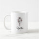 This personalized May birth flower mug features a beautifully illustrated bouquet showcasing lily of the valley and hawthorn, the traditional birth flowers of May. Rendered in shades of pink, green and gentle white tones, the floral design is accented with elegant black linework and a subtle pink bow, creating a look that is both delicate and timeless. The custom name in elegant handwritten script beneath the bouquet adds a heartfelt personal touch. Perfect as a gift for a May birthday, Mother's Day, Christmas holidays, or as a keepsake, this floral mug captures the fresh, graceful spirit of spring and the meaningful symbolism of May’s blooms.