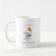 Celebrate a May birthday with this personalized birth month mug featuring a soft, storybook-style watercolor illustration inspired by spring café moments. The artwork shows an adult woman seated at a small café table, styled in relaxed layers with subtle pops of color that feel fresh, calm, and seasonal.