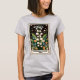 Custom women's relaxed t-shirt featuring May birth month flower, the Lily of the Valley, with "May" and "Motherhood, sweetness, purity" on an illustrated tarot card.