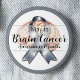 This 2.25" round pinback button features a sleek gray border symbolizing strength and support. At the center, a bold gray awareness ribbon takes the spotlight—representing brain cancer awareness. Behind the ribbon, a soft watercolor illustration of the human brain adds a thoughtful, artistic touch that reflects the complexity of the condition. Superimposed across the ribbon is the text: