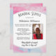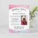 Serene Memorial Service invitation with customizable inscription MAY FLIGHTS OF ANGELS SING THEE TO THY REST. The design includes customizable photo and service details. The background is a pastel pink and pastel blue smoky effect with dark gray typography.