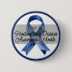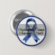 At the center of the button, a bold blue awareness ribbon symbolizes strength, resilience, and the fight for better treatments and understanding of HD.