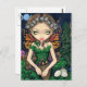 "May Queen." Since it is an illustration for a magazine focusing on May Day (aka Beltane), it is chock-full of spring & summer imagery. The fairy May Queen is shown as a wheaten haired beauty with a daisy chain in her hair, against the sky of a summer night. She is surrounded by a bounty of leaves and beautiful bright flowers, and symbols of fertility and change of seasons (such as eggs, honeybees, moon phases, etc.). She's also accompanied by a handsome Jack-in-the-Green (aka a "green man") made of leaves with stag-like antlers. My own original acrylic painting.