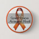 At the center, a bright orange awareness ribbon takes focus, representing the fight against spinal cancer and the push for research and better treatments. A bold orange border frames the button, creating a polished and eye-catching design.