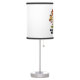 The lamp looks exactly like the picture, bright and colorful. The lamp shade is plastic not what I expected, however I love it! The printing is clear and the name can easily be read.