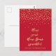 NewParkLane - Personalized New Year's Postcard, with 'May your New Year sparkle! ' in elegant brush/ script typography in faux gold, with gold sparkles/ confetti against a deep red background. A perfect card to add a bit of glam to the new year!