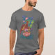 My 11 yo wore adult XL (5’7” 165#). The 8yo is small framed. She wore adult small and tied it in the back. Grandma wore adult large with long sleeve shirt underneath. Tall girl adult medium. Dark haired male adult large. Good quality dark Heather gray, Gildan brand shirt. -it was next up from basic choice and cost about $20 per shirt. Not too thick or thin. Washed and dried well, no major shrinkage. Not see-through. Can wear a bra under it fine. Screen print is just as shown and well done, front and back.