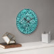 Turquoise hue 12 hour Mayan Calendar clock.