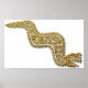 A Mayan serpent in gold. The serpent was an important social & religious symbol. Computer art by Kathie Miller.
