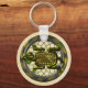 An ancient Mayan symbol showing a turtle-like creature textured in green and gold metal, sitting on a metal net held by a metallic ring in pitted, green and gold metal. The perfect design for lovers of ancient Mayan, Aztec and Mexican art.