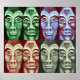 Mayan warriors - This design represents the symbolic faces of Mayan warriors in an attempt to recreate the enigmatic figures from the past. The design is hand painted with mixed-media acrylics. I have used various layers in order to customize on a variety of products. There is also a template created for you in order to change colors or add text on the poster.