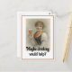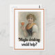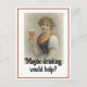 This postcard features a vintage Victorian lithograph of a woman holding a glass of beer, with the phrase "Maybe drinking would help?"