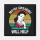 Maybe Swearing Will Help. This funny vintage sarcastic saying accessory is great for anyone who has a snarky & sassy sense of humor, appreciate sarcasm, and like to swear and cuss. This hilarious funny quote design is sure to make your friends laugh. Perfect to wear to a party! Features a retro 1950’s comic housewife set against a vintage distressed sunset.