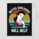 Maybe Swearing Will Help. This funny vintage sarcastic saying accessory is great for anyone who has a snarky & sassy sense of humor, appreciate sarcasm, and like to swear and cuss. This hilarious funny quote design is sure to make your friends laugh. Perfect to wear to a party! Features a retro 1950’s comic housewife set against a vintage distressed sunset.