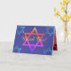 A colorful Judaic themed design featuring the Star of David. It is titled with "Mazel Tov!" and further captioned with; We share the joy on the birth of your first child. Wishing you love & happiness! Easily edited and personalized.