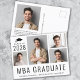 Minimal modern MBA masters degree graduation announcement card featuring a 4 picture photo collage, "MBA Graduate" written across the bottom in large capital letters and his or her class year, name and school or university in simple typography. On the reverse side, add an additional photo and a personalized message.