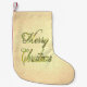 This Digitalized, graphic photo, of Cursive font, "Merry Christmas", is highlighted in, green, and gold-displayed on a glittering, yellow-gold, and bronze, background.