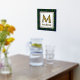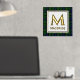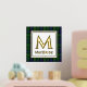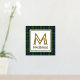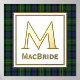 Green tartan plaid foil print, with a gold foil framed in text area, against the Scottish clan MacBride tartan pattern background. A large single letter monogram and gold foil name are ready to personalize.