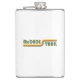Well made flask, a little better than I had expected. Flask came in clear plastic box which gave it a nice presentation when I took it out of the zazzle packaging. Image is not printed on flask but on sticker. Don't know how this will hold up I haven't used it yet. This would make a Great gift! I plan to purchase more for friends! Cheers. I thought a little brighter than computer. Very crisp, writing wasn't