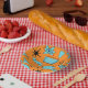 MCM Atomic Shapes Turquoise on Orange Paper Bowls